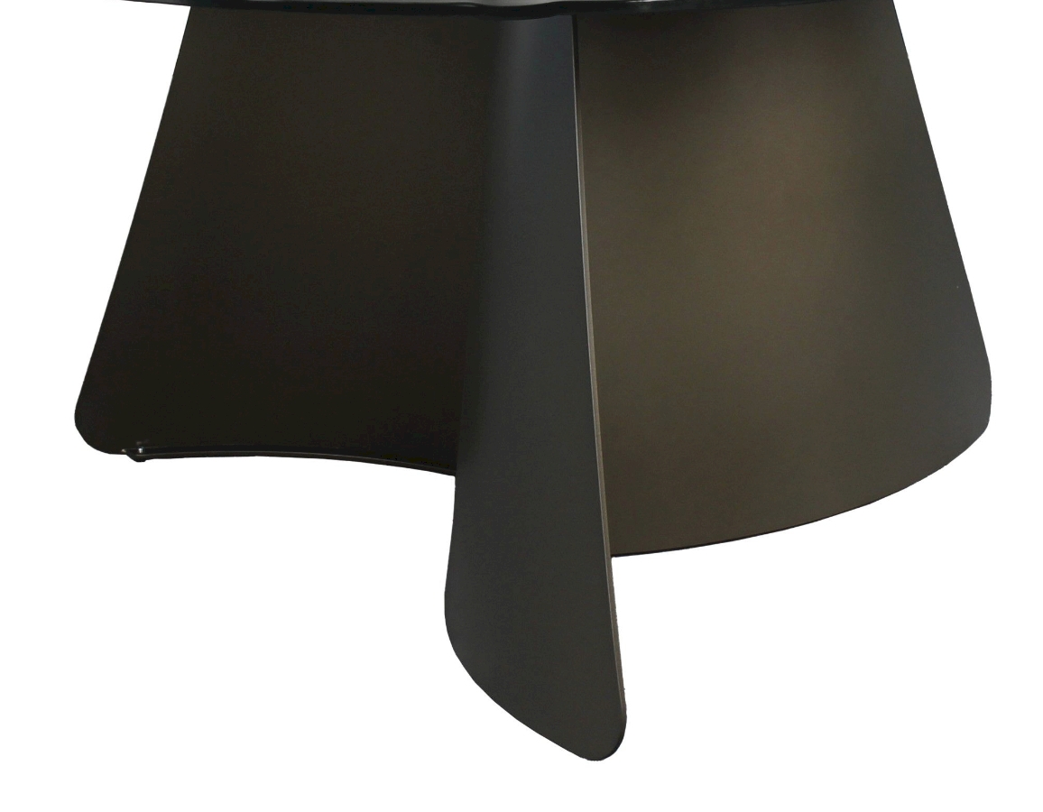 Stol stoji na čvrstoj metalnoj podlozi od tri zakrivljene ploče, s brončanom završnom obradom. Široko proširenje nogu i valoviti oblik ploča osiguravaju izvrsnu stabilnost, dok zakrivljeni oblik, zajedno s valovitim odrazom ploče stola, naglašava estetiku dizajna.