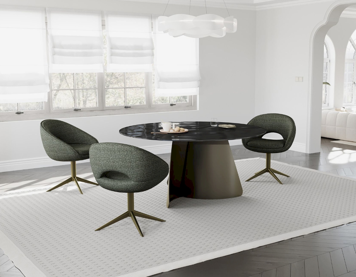 Ovaj stol prikladan je i za stambene i poslovne prostore, jer pruža i umjetnički dojam svojom skulpturalnom pločom i svakodnevnu funkcionalnost svojim modernim materijalima i dizajnom. To je izniman komad namještaja za one koji traže dizajnerski suvremeni namještaj.
