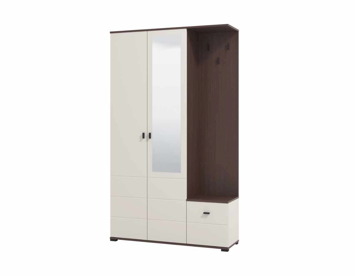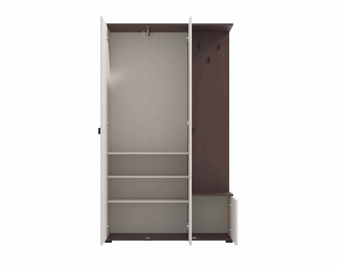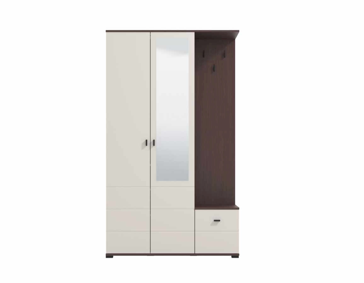 Kompaktan dizajn nudi praktičan iskoristiv prostor za pohranu sezonske odjeće i obuće, dok centralno postavljeno ogledalo vizualno povećava prostor i doprinosi osjećaju svjetline i urednosti.